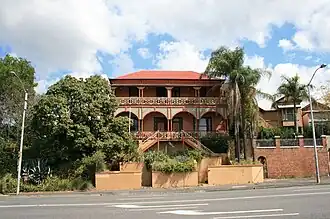 In 1866 and 1874 Milne had acquired two blocks of land fronting Petrie Terrace (renamed Musgrave Road in 1888), and was recorded as resident on the site from the late 1860s. The kitchen houses attached to the present Warriston may be the original Milne residence.[1]