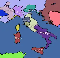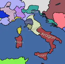 Duchy of Milan Republic of Genoa Marquisate of Mantua Republic of Lucca Republic of Siena Florentine Republic (from 1450) Kingdom of France (from 1452) | ||||||
