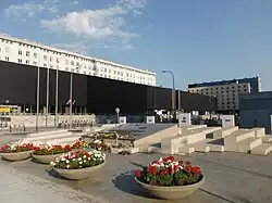 The Warsaw Insurgents Monument (Polish: Pomnik Powstańców Warszawy) is a sculpture in Warsaw, Poland, located at the Warsaw Insurgents Square, in the Downtown district. It commemorates the insurgents of the Kiliński Battalion of the Warsaw Uprising fought in 1944 during the Second World War. The sculpture has a form of a commemorative plaque mounted to the ground surrounded by 63 cuboids of varying lengths and sizes, symbolising the number of days the uprising lasted. It was designed by Andrzej Domański, and unveiled on 1 August 1979.