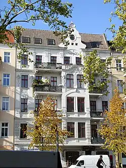The Warschauer Straße station, on the city's S-Bahn and U-Bahn rail systems, is located in the southern half of Warschauer Straße.[1] Warschauer Straße station serves a stop on S-Bahn lines S3, S5, S7 and S9 and as the terminus of U-Bahn line U1 and U3.