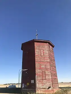Wartime is an unincorporated community and former hamlet, within the Rural Municipality of Monet No. 257, Saskatchewan, Canada. The community is located along Highway 44 approximately 13 km west of Elrose along Canadian National Railway's Elrose sub-division track.[5] The community once boasted a train station built in 1914 which was demolished in 1978, two grain elevators; a Saskatchewan Wheat Pool and a Federal elevator as well as a wooden water tank.[6] The elevators have disappeared but the water tower is still standing and in use.