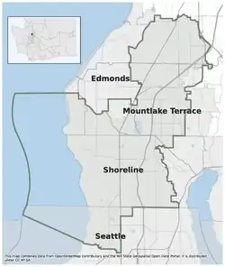 It includes the cities of Lynnwood, Edmonds (both in Snohomish County) and Shoreline (in King County).