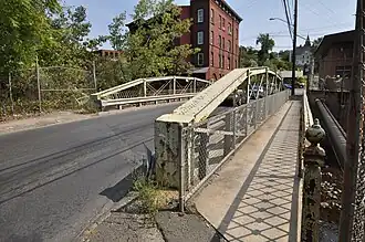 The Washington Avenue Bridge is a historic lenticular truss bridge carrying Washington Avenue over the Mad River in Waterbury, Connecticut. Built in 1881, it is the oldest known surviving example of a lenticular pony truss bridge built by the Corrugated Metal Company, later known as the Berlin Iron Bridge Company, a prolific bridge maker in New England of the late 19th century. The bridge was listed on the National Register of Historic Places in 2001.[1]