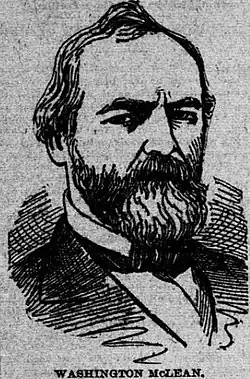 Washington McLean (May 1816 – December 8, 1890) was an American businessman of Scottish ancestry best known as the owner of the Cincinnati Enquirer newspaper. Born in Cincinnati, Ohio, in 1848 Washington McLean and his brother S.B.W. McLean acquired a share position in the Cincinnati Enquirer to be partners with editor James J. Faran. Washington McLean bought out Faran in the 1860s and in 1872 sold a half interest in the newspaper to his son.