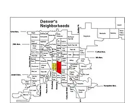 - ^ "Denver Neighborhoods". Archived from the original on April 7, 2004.