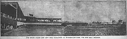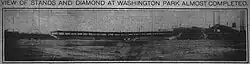The second home of the Indianapolis Indians, from 1905 to 1931, is now referred to as the West Washington Street Park, but at the time was known as either Washington Park or Washington Baseball Grounds. The park was located at 1235 West Washington Street, just west of the White River (39°46′1″N 86°10′54″W / 39.76694°N 86.18167°W). Like its predecessor at Washington and Gray, this was a very rudimentary baseball venue with an all-wooden grandstand and a capacity of just over 4,000. In 1909 the park was completely rebuilt, and the seating capacity was enlarged to 20,000, the most in the minor leagues, due mainly to the addition of extensive bleacher sections. It also boasted the largest playing field of any minor league park, and was larger than many major league parks of the era. Aside from hosting the American Association's Indians, this venue was home to the Indianapolis ABCs of the Negro National League from 1920 to 1926.[1] The second ballpark also served as the home field for the 1911 Butler Christians football team.[2][3]