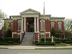 The Third District Appellate Court Building is found on the northeast corner of the square. The court building was constructed between 1857–60 and served as one of the Illinois State Supreme Court buildings for a decade.[2][6][7] In 1897, the state supreme courts at Ottawa, Mt. Vernon, and Springfield were consolidated into one in Springfield.[7] The court in Ottawa, one of five in the state of Illinois, played a role in drawing the Lincoln-Douglas Debate to the city.[2] The building, at 1004 Columbus Street in Ottawa, still serves as the Third District Appellate Court of Illinois.[8]