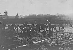 Rose Bowl referee Walter Eckersall, who also officiated a Cornell game that season, was quoted as saying "[WSC] is the equal of Cornell. There is not a better football team in the country."[66] The Associated Press referred to the 1915 WSC team as "mythical national champions" when members of the team returned to Pullman for a 20th anniversary celebration in 1935.[67] In 2014, Washington State Senate Resolution 8715 recognized the team as national champions on the season's 99th anniversary.[68] The senate resolution was adopted with WSU head football coach Mike Leach in attendance.
