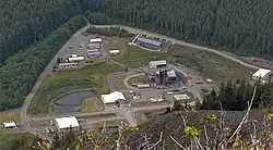 In June 1980, the Washington State Commission for Vocational Education announced its choice of a gravel pit on 100 acres (40 ha) approximately 8 miles (13 km) east of North Bend as its preferred location for the academy.[10] The gravel pit was abandoned after its use in the construction of Interstate 90 and its ownership was divided between the state government and Weyerhaeuser.[11] The North Bend site, later reduced to 50 acres (20 ha), was deemed ideal because of its isolation from nearby residents and accessibility via Interstate 90.[12] The King County Council approved construction of the fire training academy in North Bend in January 1982 and work began in April 1983.[13][14] An official groundbreaking ceremony was held on July 20, 1983, with county and local officials joined by Governor John Spellman.[15]