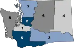 - Yakima: Asotin, Benton, Columbia, Franklin, Garfield, Walla Walla and Yakima Counties