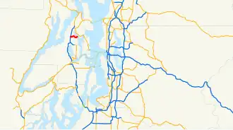 State Route 308 (SR 308) is a 3.42-mile-long (5.50 km) state highway in the U.S. state of Washington, serving the community of Keyport in Kitsap County. The highway travels generally east from an interchange with SR 3 east of Naval Base Kitsap at Bangor to the main entrance of the Naval Undersea Warfare Center in Keyport. SR 308 was codified as the Keyport branch of State Road 21 in 1929 and continued as the Keyport branch of Primary State Highway 21 (PSH 21) in 1937. During the 1964 highway renumbering, the branch became a section of SR 303, which ran from Bremerton to Bangor and had a spur route serving Keyport. SR 308 was established in 1971 along the old route of SR 303 Spur and was extended in 1991 to the SR 3 freeway after SR 303 was re-routed onto a new freeway in Silverdale.