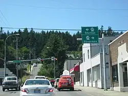 SR 310 was established in 1991 as a connector from SR 304 in Bremerton to the SR 3 freeway,[2] following the alignment of SR 3 in Bremerton prior to the construction of its bypass of Bremerton in the 1970s.[10] The highway was first codified into the state highway system in 1915 as part of State Road 21 and became PSH 21 in 1937.[11][12][13] SR 3 was created during the 1964 highway renumbering, following the route of PSH 21 from Shelton to Port Gamble, and traveled along Callow Avenue and Kitsap Way within Bremerton.[14][15] Work began on a freeway bypass of Bremerton in the 1960s, with the first section opening in February 1968 and SR 3 being re-aligned onto it after 1970.[16][17] After the Ohio-class submarines were commissioned by the United States Navy and Naval Base Kitsap was selected to house them in 1977, a $36.9 million investment in local highways was spent to expand the SR 3 freeway and build a bypass of Silverdale for SR 303.[10] No major revisions to the route of SR 310 have occurred since it was established in 1991,[18] however the City of Bremerton rejected a proposal to repave Kitsap Way in 1997.[19]