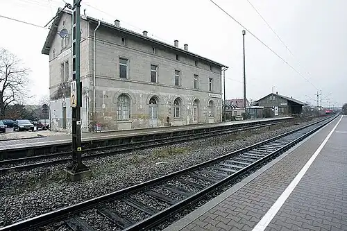Wasseralfingen station is a railway station on the Stuttgart-Bad Cannstatt–Nördlingen railway in the city of Aalen, located in the Ostalbkreis district in Baden-Württemberg, Germany. The train services are operated by Go-Ahead Baden-Württemberg and Go-Ahead Bayern.[2]