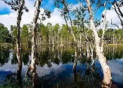The Wasur National Park forms part of the largest wetland in Merauke Regency, South Papua, Indonesia and has been one of the least disturbed by human activity.[3] The high value of its biodiversity has led to the park being dubbed the "Serengeti of Papua".[3] The vast open wetland, in particular Rawa Biru Lake, attracts a very rich fauna.