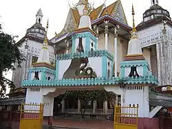 Wat Moha Montrey (Khmer: វត្តមហាមន្ត្រី, UNGEGN: Vôtt Môha Môntrei, ALA-LC: Vatt Mahā Mantrī [ʋɔət mɔhaː mɔntrəj]) is a wat located on Sihanouk Boulevard in Phnom Penh, Cambodia. Built in 1970, it was used by the Khmer Rouge between 1975 and 1979 as a storage house for rice and corn.[1] The tower measures 35 metres in height.[1] The temple was named in honor of Chakrey Ponn, King Monivong's War Minister. Moha Montrey means "The Great Minister".