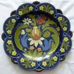 In autumn 1889 the 27-year-old Domenico Marcucci came to Aller Vale as one of the chief designers. He was an Italian decorator from Faenza, a city noted for its faience pottery. Marcucci had been involved in two exhibitions in London during the previous year: an Italian exhibition in Kensington, and one of ceramics at William De Morgan's premises.[5] His influence had a great impact on the designs and the quality of Aller Vale's pottery.[6] Marcucci is thought to be responsible for the introduction of a design of blue slipware scrolls over a cream ground which was admired by Princess Alexandra, who placed a special order for it. She asked that the design should be called Sandringham Ware and it was marketed under that name.[5]