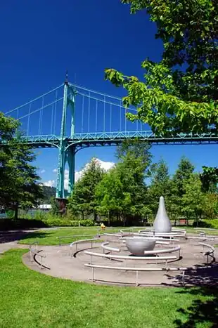 Water, Please is a 1997 aluminum and stainless steel sculpture by Don Merkt, installed outside the Water Pollution Control Laboratory at 6543 North Burlington Avenue, in north Portland, Oregon's Cathedral Park neighborhood, in the United States.[1][2] Inspired by the relationship between people and water, the work is part of the collection of the City of Portland and Multnomah County Public Art Collection courtesy of the Regional Arts & Culture Council.[3] It measures 9' x 30' x 54' and was funded by the City of Portland's Bureau of Environmental Services.[4]