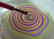 After the base coat has dried, tape is put around the fingers to gather the excess nail polish after the marbling. One or two drops of colored lacquer are chosen for the design and are added to a cup of clean water. The drops will create a circle on the water surface. The next color is added on top of the circle created by the previous drop. The resulting pattern is ready for application to the nail, but it can still be modified with a stick or toothpick to create different shapes. The nail is dipped into the pattern on the water and kept under water as a Q-tip is used to "grab" the remaining polish.[6]