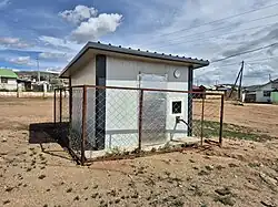 In Ger districts, residents obtained water from nearby water kiosks, due to the absence of water supply pipelines to the ger's individual residential buildings and structures. Water kiosks are usually connected to the nearby water supply pipelines for its water sources. In the absence of pipelines, water at water kiosks is brought in by water trucks.[3]