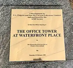 - ^ a b Johanson, Simon. "Dexus snaps up Waterfront Place tower, Eagle Street Pier retail site for $635m". Brisbane Times. Retrieved 23 June 2015.