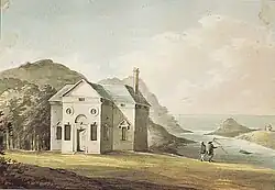 The Devon topographer Rev. John Swete visited Watermouth, before the construction of the Georgian castle, as part of his travels in 1796, and was entertained by Mr Davie. He painted the Palladian house then standing on the site and recorded the visit in his journal.[5]