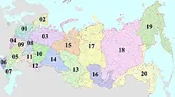 According to chapter 4, article 28 of the Russian Water Code, those are: Baltic Watershed District, Barents–Belomor Watershed District, Dvina–Pechora Watershed District, Dnieper Watershed District, Don Watershed District, Kuban Watershed District, Western Caspian Watershed District, Upper Volga Watershed District, Oka Watershed District, Kama Watershed District, Lower Volga Watershed District, Ural Watershed District, Upper Ob Watershed District, Irtysh Watershed District, Lower Ob Watershed District, Angara–Baikal Watershed District, Yenisey Watershed District, Lena Watershed District, Anadyr–Kolyma Watershed District and Amur Watershed District.[1]