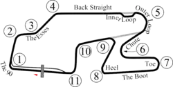 The IRL IndyCar Series debuted at the track in 2005, the first season in which the IRL added road courses to the schedule. During its entire run, the IndyCar Series race utilized the full 3.403-mile (5.477 km) circuit. The layout included the "Boot" and the "Inner Loop" bus stop chicane that was built in 1992.