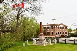 Like many Commonwealth countries and towns and cities across Canada the village of Wawanesa was greatly affected by the great wars. During World War I 189 men in the village and area enlisted into the military and 47 were killed.[6] When World War II began, the men and women of the area again answered the calls for help from their country. During this war, 220 people from the district signed up to enlist and 14 were killed and did not return to the valley.[6] A war memorial was established in the community and a cenotaph erected along Cliff Street with their names.[6]