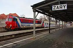 ![]() PKP class SU46 with EuroCity "Wawel" ready to depart for Berlin after change of locomotives at Węgliniec in Poland (May 2012) | |