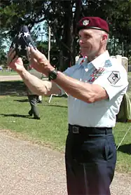 Chief Master Sergeant Wayne Fisk (born April 6, 1945) is a retired United States Air Force pararescueman. He was involved in Operation Ivory Coast, the raid on the Son Tay prisoner of war camp, and later the rescue of the crew of the SS Mayagüez.[1] When the Mayagüez was hijacked by Cambodian Communist forces in May 1975, Fisk was a member of the assault force that successfully recovered the ship and the entrapped United States Marines. For his actions, he was awarded his second Silver Star.