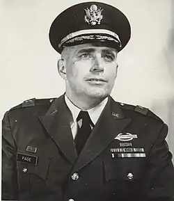Page joined the United States Army for World War II, enlisting in 1943 and receiving his commission after completion of Officer Candidate School in 1944. He served in Europe as a member of the 398th Infantry Regiment, 100th Infantry Division and attained the rank of captain before being discharged in 1946.[3]