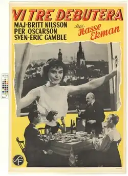 We Three Debutantes (Swedish: Vi tre debutera) is a 1953 Swedish drama film directed by Hasse Ekman and starring Maj-Britt Nilsson, Sven-Eric Gamble, Per Oscarsson and Karl Gerhard.[1] It was shot at the Råsunda Studios in Stockholm and on location in the city. The film's sets were designed by the art director Nils Svenwall.