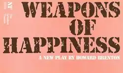 Weapons of Happiness became the first commissioned play to be performed at the reopened National Theatre when it premièred on the Lyttelton stage on 14 July 1976.[5] The cast included Geoffrey Bateman as Joseph Stalin, Nick Brimble, Julie Covington, Frank Finlay as Josef Frank, Bernard Gallagher, Michael Medwin, William Russell and Derek Thompson. It was designed by Hayden Griffin and directed by David Hare,[1] a collaborator of Brenton from Portable Theatre Company and co-writer with him of Brassneck and Pravda, itself staged at the National. Given the subject of the play, it is ironic that its first production took place against the backdrop of the National Theatre itself undergoing a good deal of difficulties with trade unions.[6]