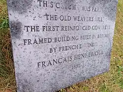 Six storeys high, 80 ft by 40 ft by 112 ft, with its lower floor cantilevered some 10 ft above loading bays, it formed part of a complex of buildings owned by Weaver & Co. and was designed and built by the French engineer François Hennebique in 1897, being an early example of a reinforced concrete building in Europe. The building survived World War II bombings in 1941, the general post-war clearance of other industrial buildings in the area and the filling in of the adjacent basin in the late 1960s, but was demolished in 1984 to make way for a new Sainsbury's superstore.[1] A column from the fifth floor of the original building was preserved by the Science Museum, with another piece going to Amberley Museum. Another fragment lies by the side of the River Tawe, where a plaque commemorates Hennebique and his achievement.