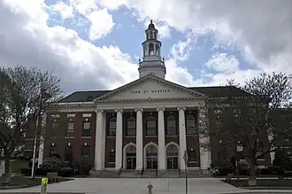 The Webster Municipal Buildings Historic District encompasses a collection of Colonial Revival municipal buildings in the center of Webster, Massachusetts, along with a collection of military memorials on the grounds of the town hall.[2] The historic district was listed on the National Register of Historic Places in 2012.[1]