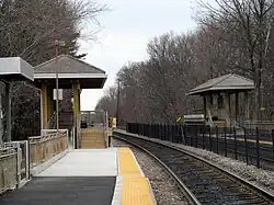 Wedgemere station is an MBTA Commuter Rail station in the southeast portion of Winchester, Massachusetts, served by the Lowell Line. The station has two side platforms serving the line's two elevated tracks. The 1957-built station building, largely unused, is adjacent to the inbound platform. After several years of work, the station was made fully accessible in February 2013.