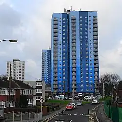 ![]() High-rises in Wednesfield, seen from Graiseley Lane. | |