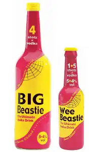 Wee Beastie was a brand of alcopop, as it is commonly referred to. It is part of the RTD (ready to drink) market and is popular in Scotland. It was available in 275ml and 700ml bottles and was 5.4% ABV. The 700ml bottles are labelled "Big Beastie". Wee Beastie is owned and distributed by Inver House Distillers. The drink is described as a carbonated, premixed blend of vodka, taurine and caffeine, flavoured raspberry and blackcurrant. The taste is similar to Red Bull.