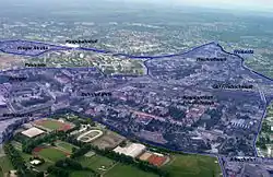 The river is formed by the confluence of the Wild Weißeritz and Red Weißeritz in Freital.[3] The Weißeritz runs through Freital and Dresden. It crosses the deep valley Plauenscher Grund between Freital and Dresden and enters the Dresden Basin. The railway line from Dresden to Nuremberg runs next to the river in this close valley. The river is displaced in an old sidearm in Dresden for flood protection reasons and therefore canalised. In Dresden, it enters the Elbe from the left.[2]