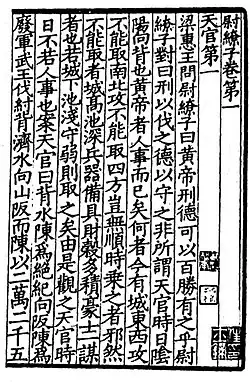 ![]() First page of the Wei Liaozi, from a 3rd-century-BC edition | |||||||||||||||||