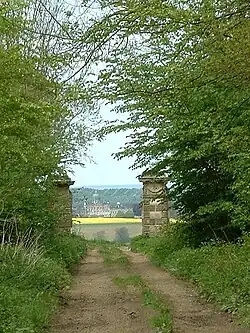 Visitors arriving by road approached from a different direction along a road that offered a spectacular view over to the great house. The view was framed by the 'Exclamation Gates', so called due to the responses that they would elicit from astonished visitors.[6] The columns, which are grade II listed, can still be seen to the west of the village, heading towards Whitwell-on-the-Hill.[7]