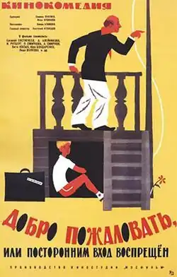 Welcome, or No Trespassing (Russian: Добро пожаловать, или Посторонним вход воспрещён, romanized: Dobro pozhalovat, ili Postoronnim vkhod vospreshchyon) is a 1964 Soviet comedy film directed by Elem Klimov. In was capitalizing on the formal restrictions that children face during their vacation in a Young Pioneer camp. Most of the cast are children, while the protagonist is the director Dynin, played by Yevgeniy Yevstigneyev. The film was selected to be screened in the Cannes Classics section of the 2015 Cannes Film Festival.[1] Both Soviet censors and modern critics characterize it as a clandestine political satire, albeit for different reasons.