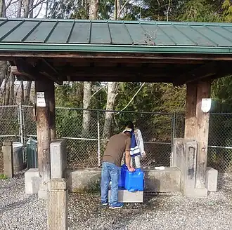 The water from the well is popular with people in the Puget Sound Area who prefer water without fluoridation or chlorination,[11] including raw water enthusiasts and brewers.[3][4][12] It is regularly tested for microbes and contamination, and is "one of the rare raw water sources in the country that is also part of a public water district and is held to the same strict EPA and Department of Health standards as tap [water]".[13] As of 2016, the well had never failed a quality test in 60 years.[2] The water district that owns the well won American Water Works Association's national tapwater taste test in 2018.[14][15]