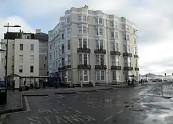 The earliest part of the village of Brighton (originally named Bristelmestune) developed in the Saxon era on a small area of high ground, The Knab, on the west bank of the Wellesbourne close to its mouth.[10][11] The ancient parish was divided by the Wellesbourne and extended on to its east bank.[8] The land around the river was marshy and prone to flooding,[11] and was left undeveloped for many years. Only when Brighton became a fashionable seaside resort in the late 18th century did this change: the southern part of Valley Gardens (present-day Old Steine) became the most popular area for promenading and socialising, and to improve the conditions the Prince of Wales and George Spencer, 4th Duke of Marlborough paid for the Wellesbourne to be culverted. Pool Valley was then paved over as well:[2] originally it was a swampy depression and "the lowest ground in modern Brighton".[12] Drainage was improved further in 1827–28 when the Wellesbourne was culverted all the way from Preston Circus, some way to the north.[2] There had been significant flooding in those years, and the Wellesbourne also flooded its valley in 1795, 1806, 1811, 1852 ("when for many hours there was a perfect river from Patcham to the northern part of Brighton" following a December rainstorm)[13] and 1876.[2] The latter year, when London Road was flooded for 3 miles (4.8 km),[1] was the last time the river flowed above ground, though. In 1889 the river stopped flowing completely when a new waterworks was built near Patcham Tunnel, taking all of its water.[2][1] After prolonged heavy rain the water table can rise to the surface in places along the London Road valley, though, "giving the appearance of an invisible stream".[2] For example, heavy rain in 1960 and 2000, which caused flooding along London Road and Mill Road in Patcham and in surrounding houses, gave the impression of the Wellesbourne flowing again.[7]