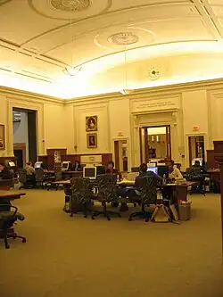 In 1905 Andrew Carnegie donated $125,000 to build what is now known as Clapp Library, on the condition that the college match the amount for an endowment. The money was raised by 1907 and construction began June 5, 1909. In 1915 Carnegie gave another $95,446 towards an addition. This renovation added a recreational reading room, offices, archives, a reserve reading room, added space for rare books and additional stacks.[27] The building underwent renovations from 1956 to 1959, that doubled its size. From 1973 to 1975 a major addition was added to the right-hand side of the building. In 1974 the building was renamed for Margaret Antoinette Clapp, a Pulitzer Prize-winning author and member of the 1930 class who served as the eighth college president from 1949 to 1966.[28]