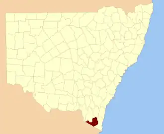 Wellesley County is one of the 141 cadastral divisions of New South Wales. It is located along the border with Victoria, with the Snowy River part of the northern boundary. It includes Bombala.