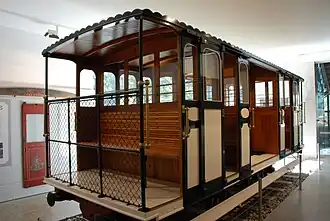 The Cable Car Museum was opened in December 2000. Located in the original winding house, and with a new extension completed in 2006, it houses original grip cars 1 and 3, with the electric winding gear still in working order. Car 1 is in red 1970s livery, including contemporary advertising. Car 3 was restored in 2005 to a green livery dating from 1905, and a bell from the San Francisco Cable Car was added. The winding gear is still in working order and runs a loop of cable, but the cable no longer leaves the building.
