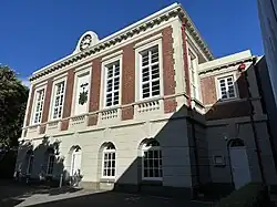 Wellington College's Pavilion, Firth House, and the Gifford Observatory were opened on 1 December, 1924. The War Memorial Hall was opened on 2 March, 1928, financially supported by £6000 from the Old Boys' Association.[7] The War Memorial Hall and classroom wings were demolished by the Ministry of Works and replaced in the 1960s with a new hall and seven-storey Tower classroom block due to its lack of earthquake reinforcements.[8] The stained glass window from the front of the War Memorial Hall is now in the front of the existing hall.