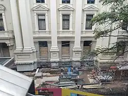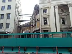 In 2014, quake strengthening was put on hold by Wellington City Council after cost projections increased from $43 million to $60 million due to unforeseen technical issues.[19][20] In March 2017 Wellington City Council announced its intention to bring the Town Hall up to 100% of the New Zealand building regulations at a cost of $85 million, with construction to begin in 2018 and an aim to re-open in 2021.[21] As restoration work began, further complexities were uncovered, and increasing costs meant that in February 2019 the council extended the budget to $112 million, with an undisclosed amount of additional contingency. The extra work required included seismic base isolation to better secure the long term future of the building, while delaying the opening by a further two years.[2] In May 2022 the council announced the opening was further delayed to January 2025, with an increased estimated cost of $182 million.[3] In 2023, the council agreed to a cost increase to $329 million, due to the poor condition and excessive waterlogging of the reclaimed land under the building. This has also affected the adjacent Michael Fowler Centre, which is due to be earthquake strengthened before 2030.[22]