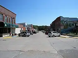 Construction of the Burlington, Cedar Rapids and Northern Railway depot shifted the focus of trade south to Wellman. The City of Wellman was incorporated in 1885, and a city water system was completed in 1896. The volunteer fire department established in 1893 was challenged by a fire which destroyed the east side of Main Street in February, 1902. The railway became part of the Chicago, Rock Island and Pacific Railroad in 1903. The first concrete sidewalk was built in front of the Wellman Savings Bank in 1904 and main street was paved in 1927. The first sewage treatment plant was built in 1940. The first fire truck went into service in August, 1946. Natural gas became available from the Wellman Municipal Gas System in 1963.[4]